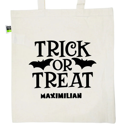 Stofftasche aus Bio- Baumwolle mit Namen | Trick or Treat schwarz