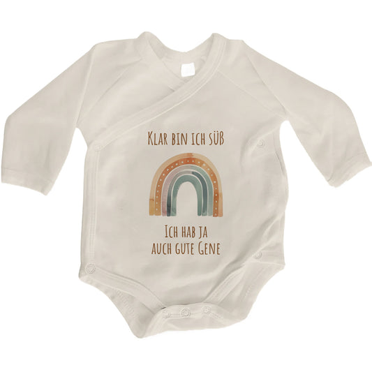 Baby Body Langarm mit Spruch | Wickelbody aus Bio-Baumwolle | Klar bin ich süß