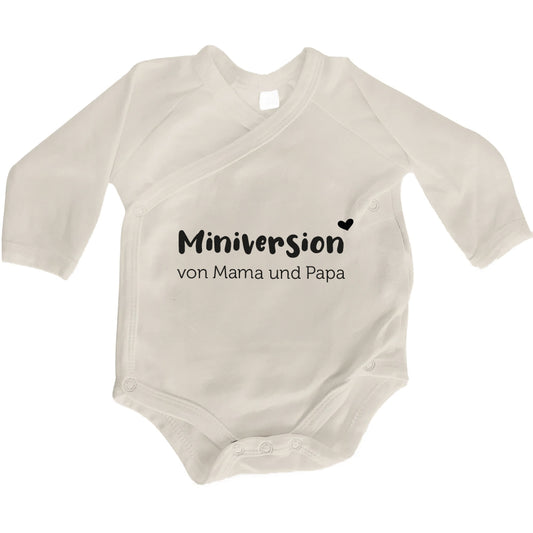Baby Body Langarm mit Spruch | Wickelbody aus Bio-Baumwolle | Miniversion von Mama und Papa