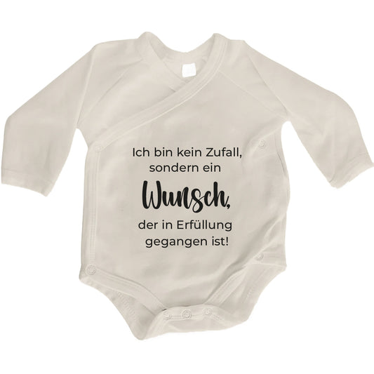 Baby Body Langarm mit Spruch | Wickelbody aus Bio-Baumwolle | Ich bin kein Zufall, sondern ein Wunsch