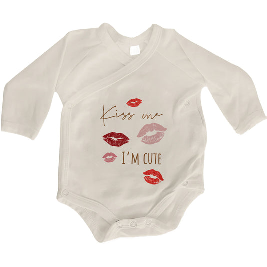 Baby Body Langarm mit Spruch | Wickelbody aus Bio-Baumwolle | Kiss Me, I’m Cute