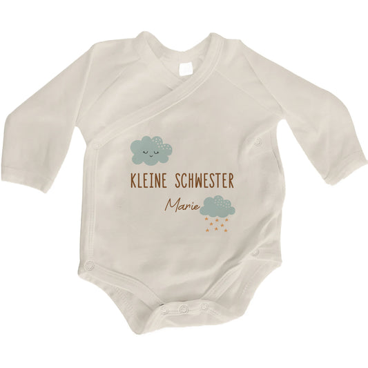 Baby Body Langarm mit Name | Wickelbody aus Bio-Baumwolle | Kleine Schwester