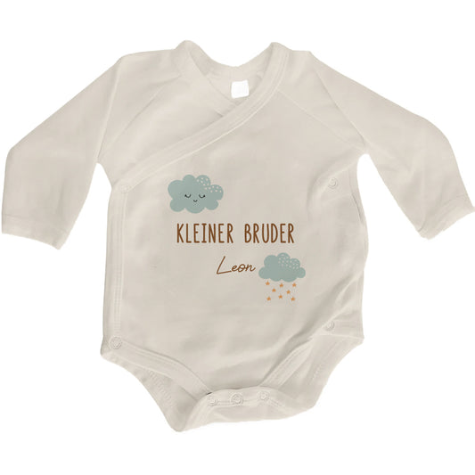 Baby Body Langarm mit Name | Wickelbody aus Bio-Baumwolle | Kleiner Bruder