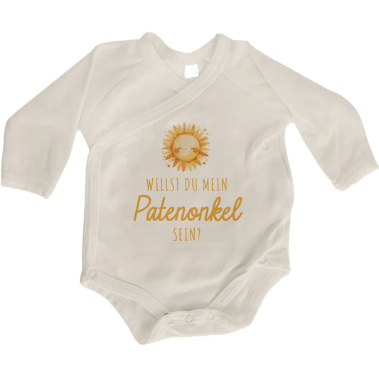 Baby Body Langarm mit Spruch | Wickelbody aus Bio-Baumwolle | Willst du mein Patenonkel sein?