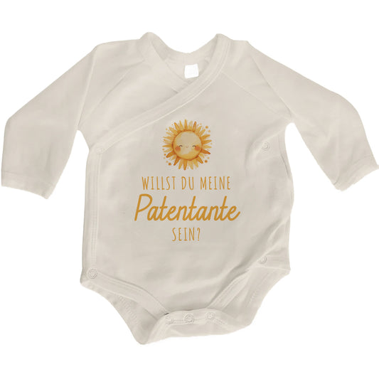 Baby Body Langarm mit Spruch | Wickelbody aus Bio-Baumwolle | Willst du meine Patentante sein?