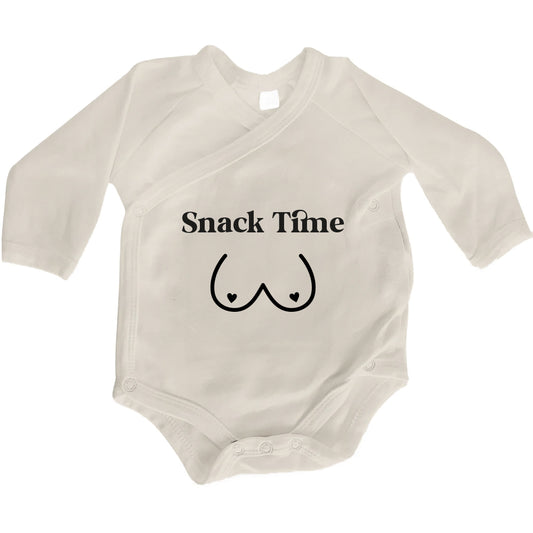 Baby Body Langarm mit Spruch | Wickelbody aus Bio-Baumwolle | Snack Time