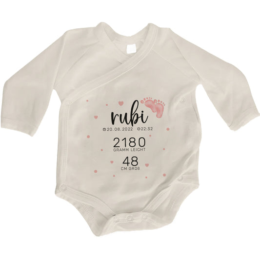 Baby Body Langarm mit Name & Geburtsdaten | Wickelbody aus Bio-Baumwolle | Babys Daten