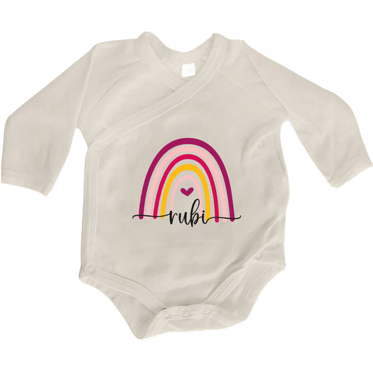 Baby Body Langarm mit Name | Wickelbody aus Bio-Baumwolle | Regenbogen Bunt