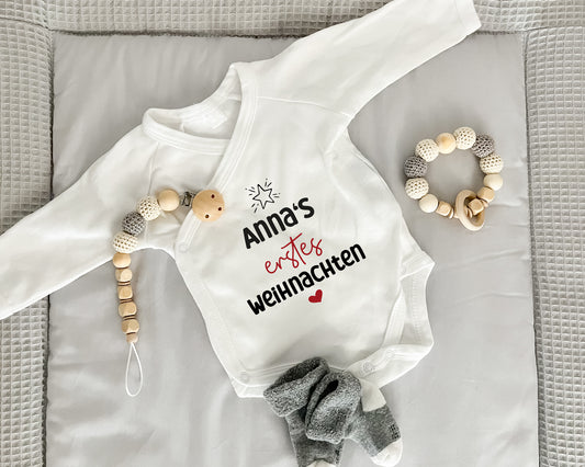 Baby Body Langarm mit Name | Wickelbody aus Bio-Baumwolle | Erstes Weihnachten