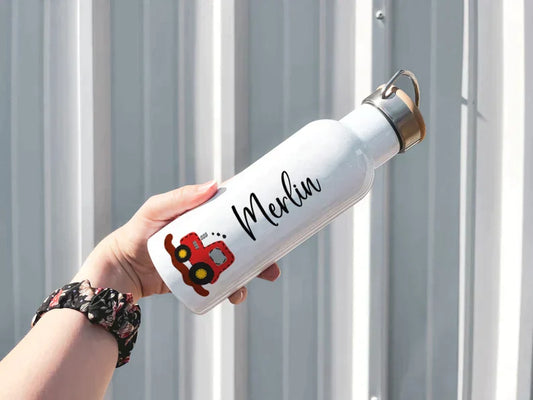 Edelstahl Trinkflasche mit Namen | Traktor rot