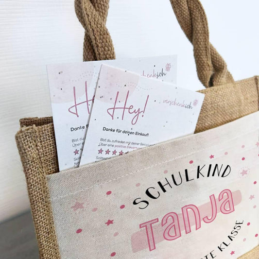 Jute Pocket Tasche mit Namen | Schulkind Rosa