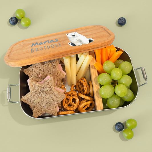 Brotdose | Edelstahl mit Bambus- oder Buchedeckel | 700 ml | Tierparty Eisbär