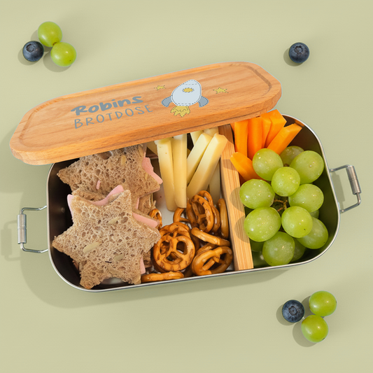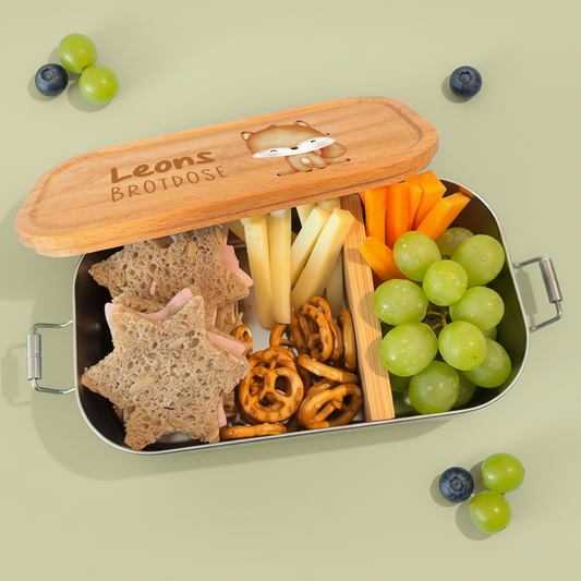 Brotdose | Edelstahl mit Bambus- oder Buchedeckel | 700 ml | Tierkinder Fuchs