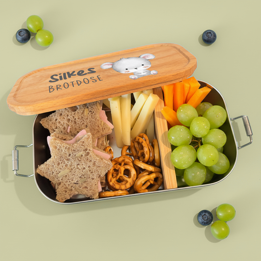Brotdose | Edelstahl mit Bambus- oder Buchedeckel | 700 ml | Tierkinder Maus