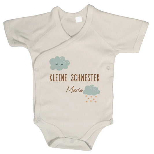 Baby Body Kurzarm mit Name | Wickelbody aus Bio-Baumwolle | Kleine Schwester