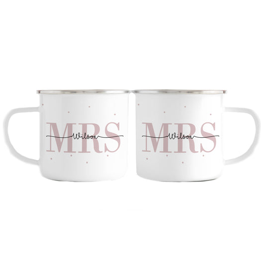 Emaille Tassen-Set mit Namen + Datum | Mrs + Mrs