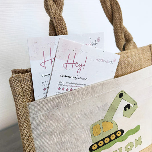 Jute Pocket Tasche mit Namen | Bagger grün