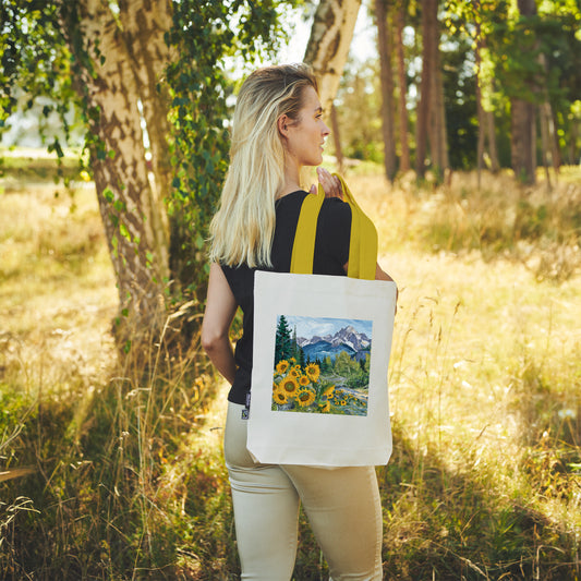 Twill Bag aus Bio- Baumwolle | Gemälde 7 | Gebirge mit Sonnenblume