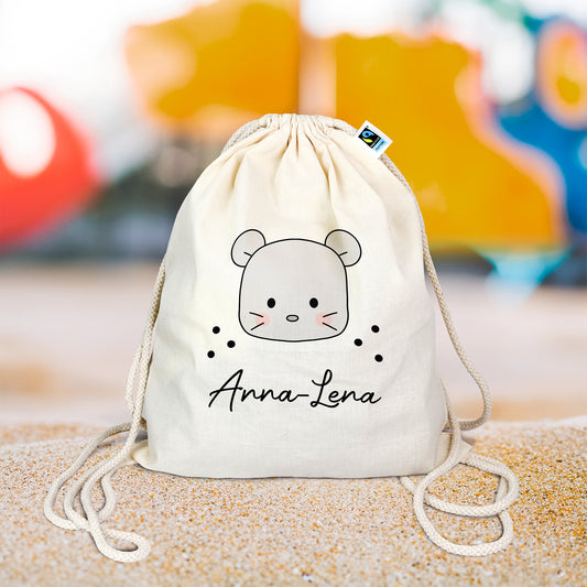Turnbeutel aus Bio- Baumwolle mit Name | Maus