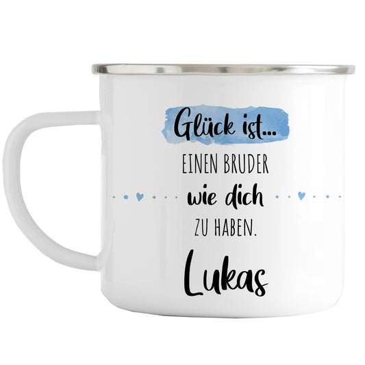Emaille Tasse mit Namen | Glück ist einen Bruder wie dich zu haben