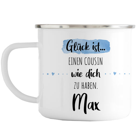 Emaille Tasse mit Namen | Glück ist einen Cousin wie dich zu haben
