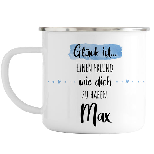 Emaille Tasse mit Namen | Glück ist einen Freund wie dich zu haben