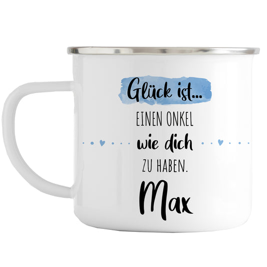 Emaille Tasse mit Namen | Glück ist einen Onkel wie dich zu haben