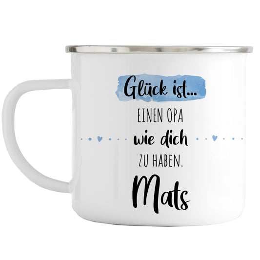 Emaille Tasse mit Namen | Glück ist einen Opa wie dich zu haben