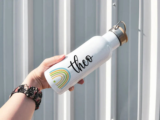 Edelstahl Trinkflasche mit Namen | Regenbogen bunt