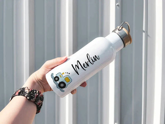 Edelstahl | Trinkflasche mit Namen | Traktor blau