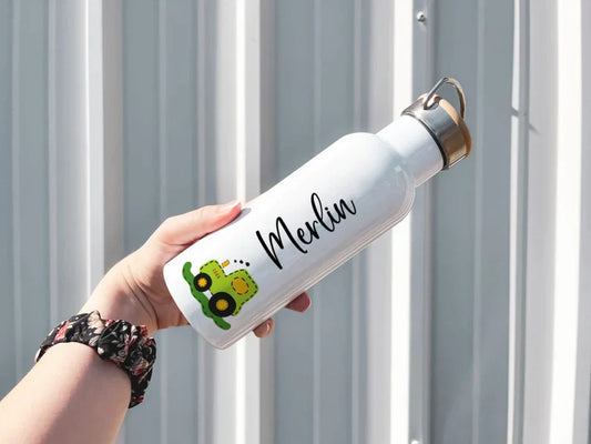 Edelstahl Trinkflasche mit Namen | Traktor grün
