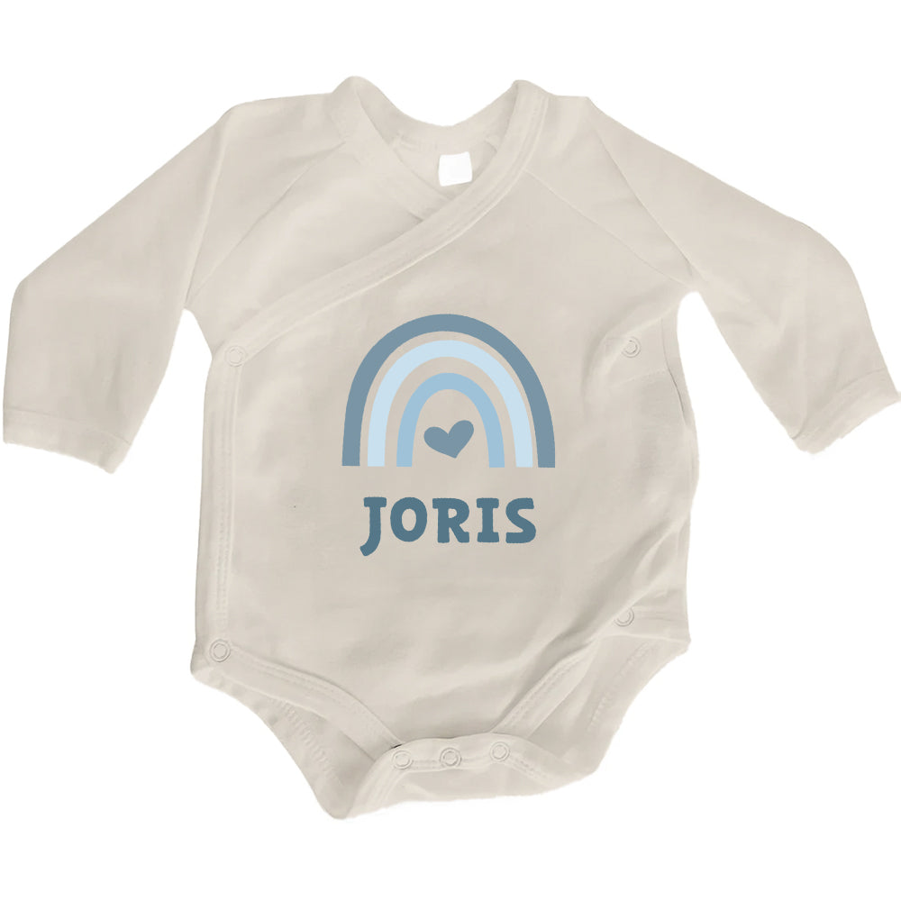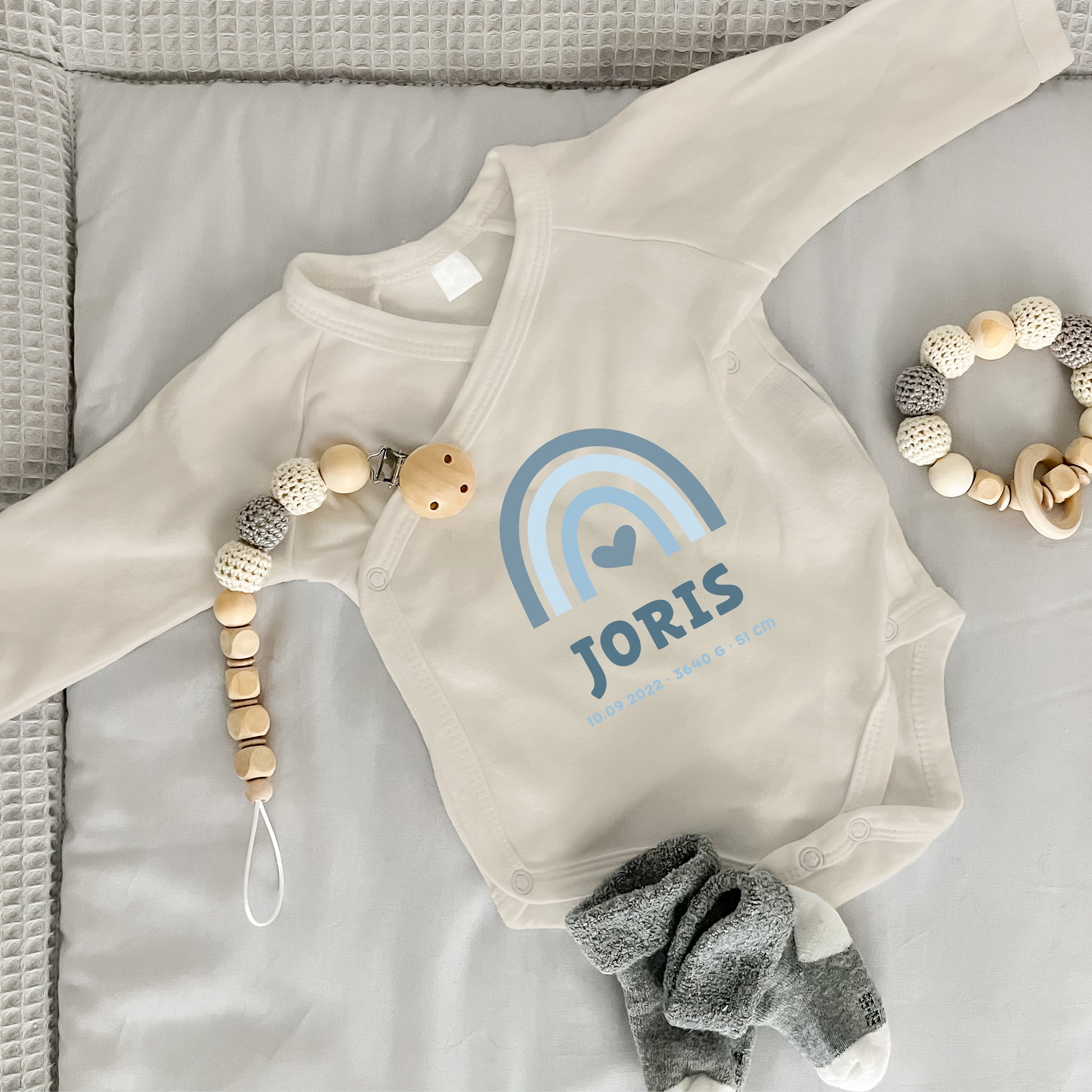 Baby Body Langarm mit Name & Geburtsdaten | Wickelbody aus Bio-Baumwolle | Regenbogen Blau