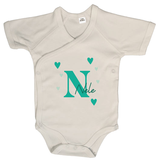 Baby Body Kurzarm mit Name | Wickelbody aus Bio-Baumwolle | Initiale in karibik grün