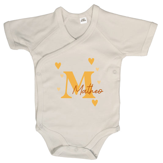 Baby Body Kurzarm mit Name | Wickelbody aus Bio-Baumwolle | Initiale in gold gelb