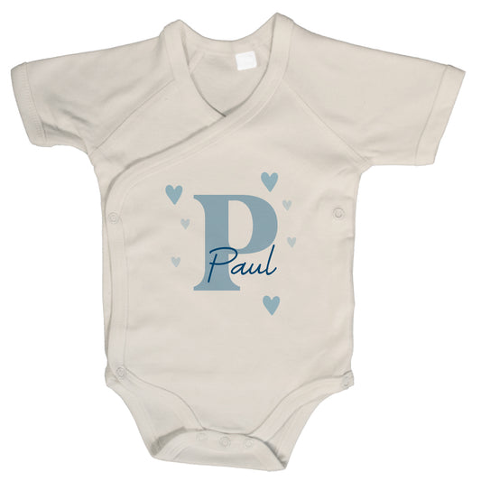 Baby Body Kurzarm mit Name | Wickelbody aus Bio-Baumwolle | Initiale in blau