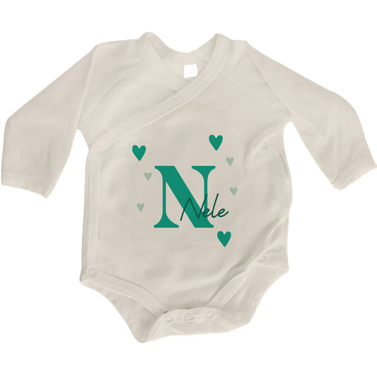 Baby Body Langarm mit Name | Wickelbody aus Bio-Baumwolle | Initiale in karibik grün