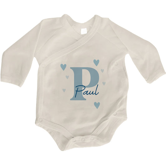 Baby Body Langarm mit Name | Wickelbody aus Bio-Baumwolle | Initiale in blau