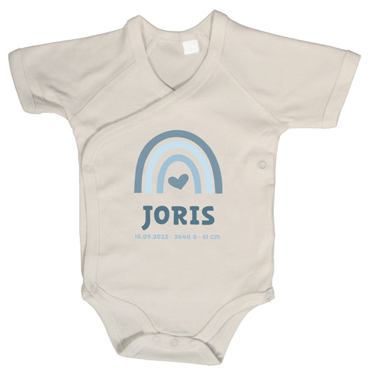 Baby Body Kurzarm mit Name & Geburtsdaten | Wickelbody aus Bio-Baumwolle | Regenbogen Blau