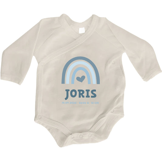 Baby Body Langarm mit Name & Geburtsdaten | Wickelbody aus Bio-Baumwolle | Regenbogen Blau