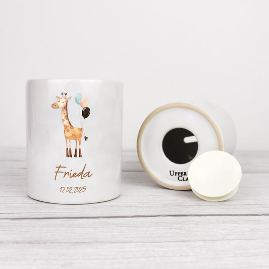 Keramik Spardose mit Name + Datum | Tierparty - Giraffe