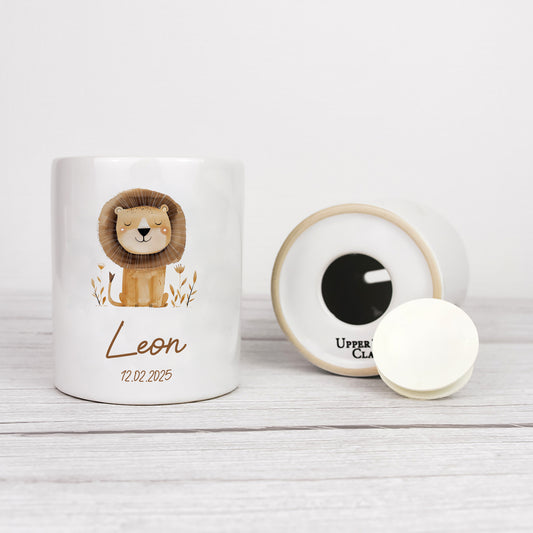 Keramik Spardose mit Name + Datum | Tierparty - Löwe