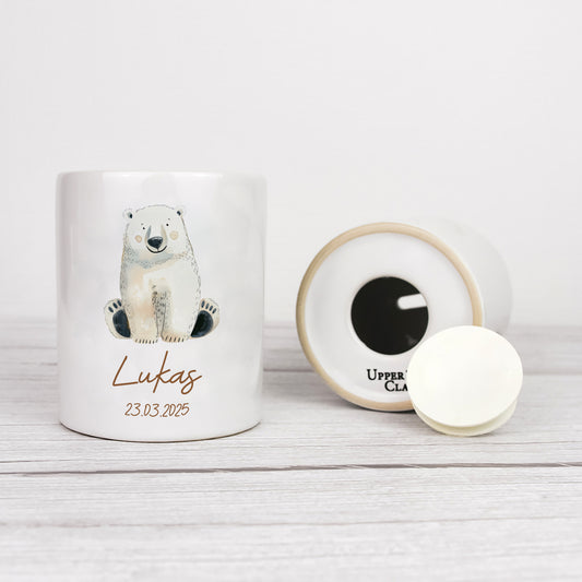 Keramik Spardose mit Name + Datum | Tierparty - Eisbär