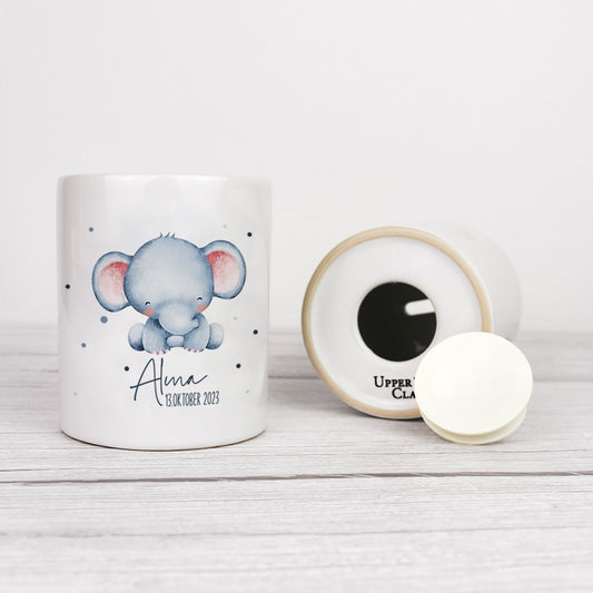 Keramik Spardose mit Name + Datum | Tierkinder - Elefant