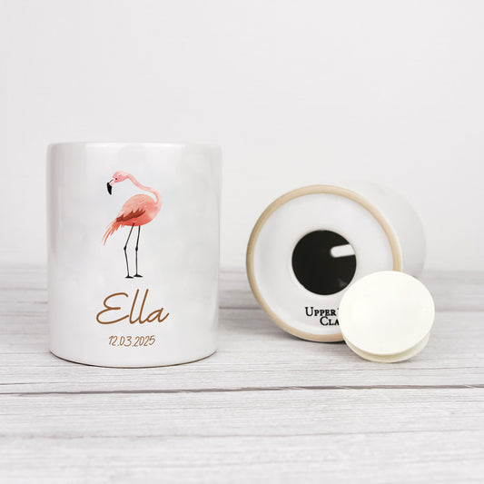 Keramik Spardose mit Name + Datum | Tierparty - Flamingo