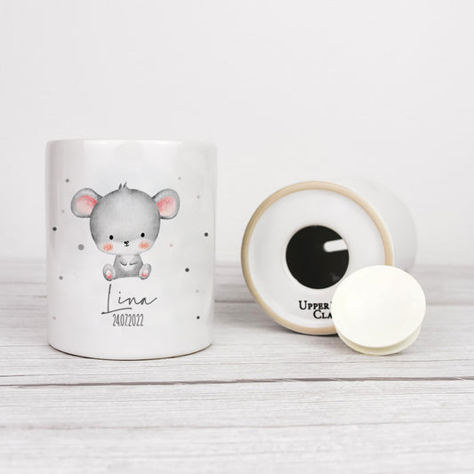 Keramik Spardose mit Name + Datum | Tierkinder - Maus