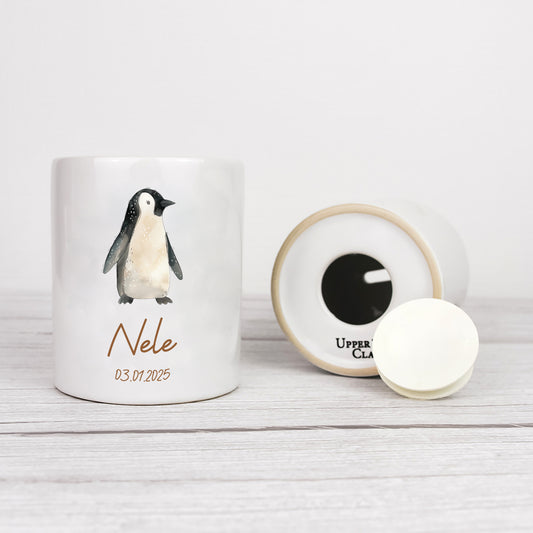 Keramik Spardose mit Name + Datum | Tierparty - Pinguin