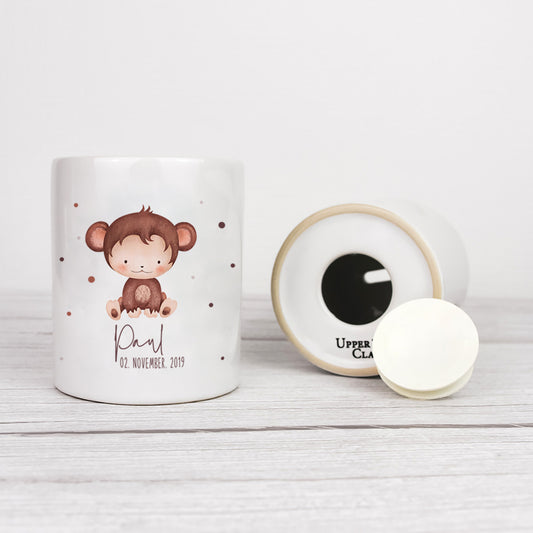 Keramik Spardose mit Name + Datum | Tierkinder - Affe