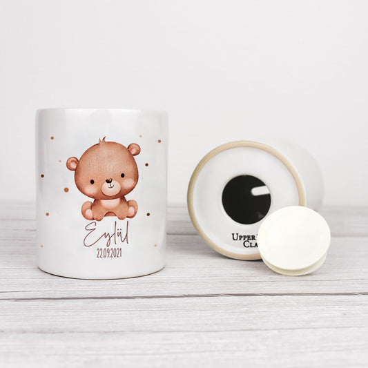Keramik Spardose mit Name + Datum | Tierkinder - Bär