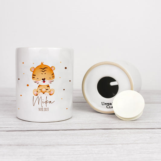 Keramik Spardose mit Name + Datum | Tierkinder - Tiger