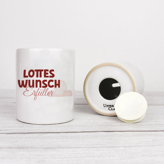 Keramik Spardose mit Name | Wunsch Erfüller rot